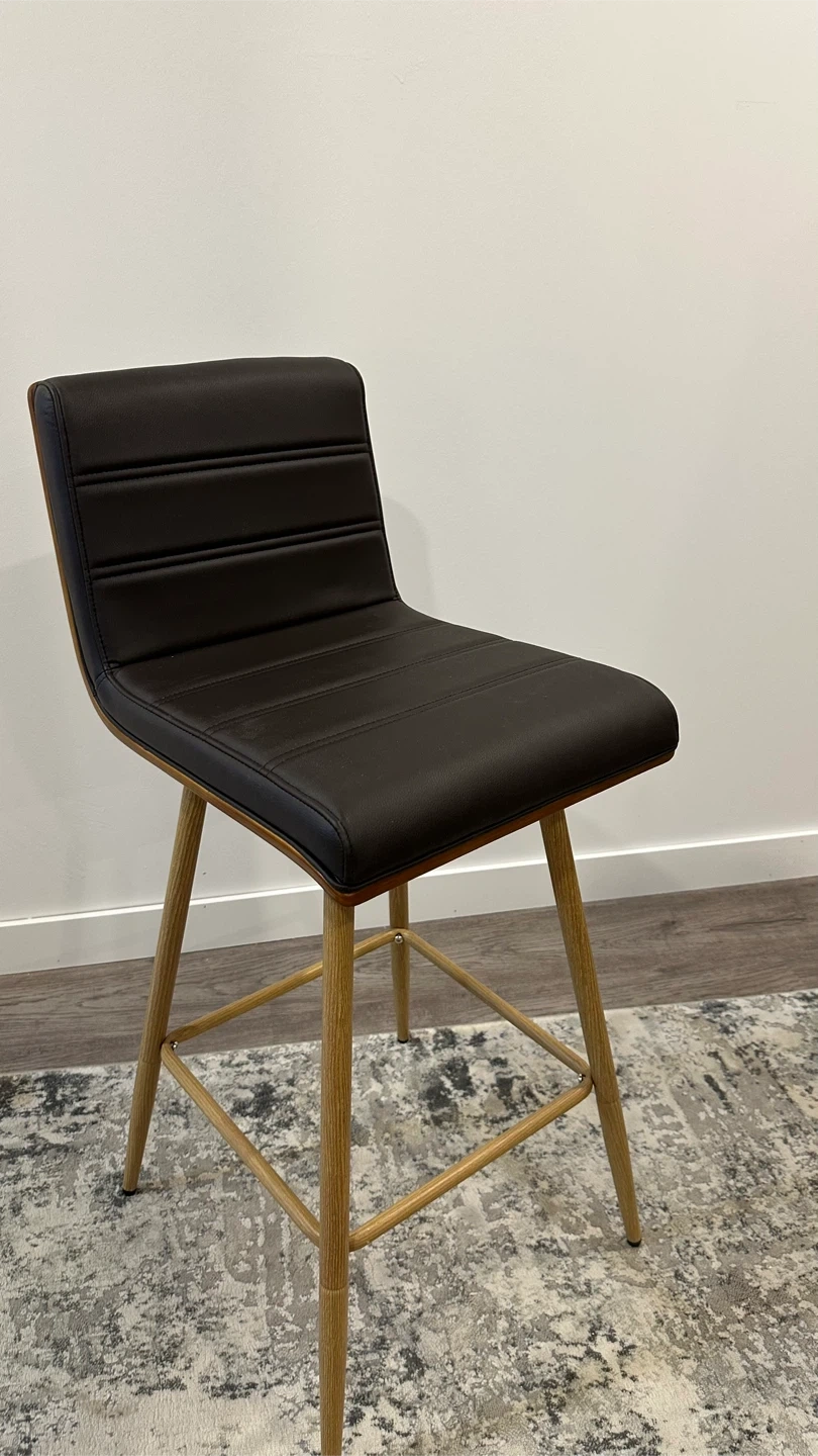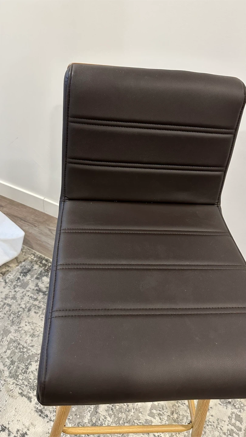 Selling brand new stylish dark brown stools with a faux leather seat. They’re new and would look great in any kitchen or bar area. The legs are a light wood tone, adding a nice contrast to the dark seat. The stool is sturdy and comfortable for sitting