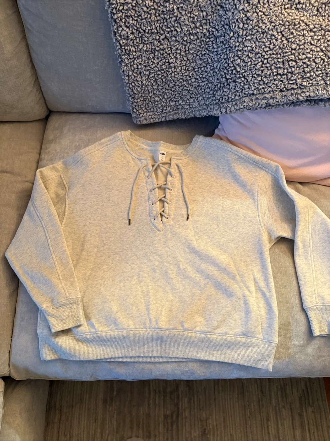 Selling the following… 1. Old Navy tie up sweater - size large $15 2. Costco oversized shacket - size XL $15 3. Cute white ribbed top from H&M's - size large $10 4. Brand new black bralette - size small $10 brand new 5. Purple Lululemon tank top - think it’s a medium/large $20 Pick up in East York