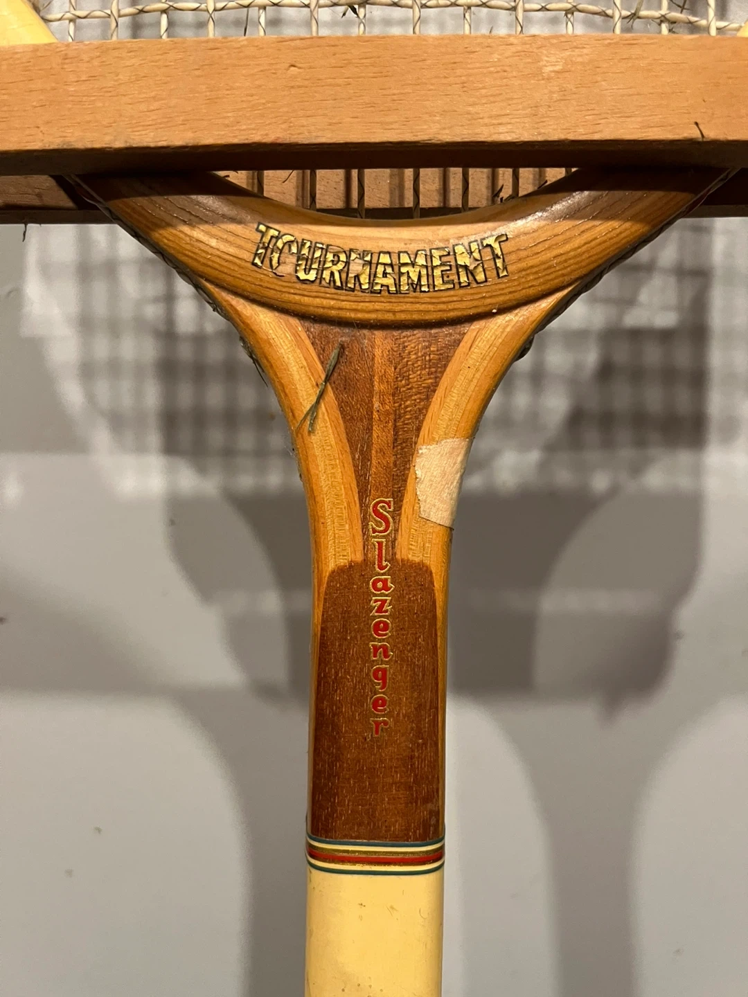 Selling a vintage Slazenger Tournament tennis racket. It has a unique wooden frame and a classic design. Perfect for collectors or anyone looking for a piece of tennis history!