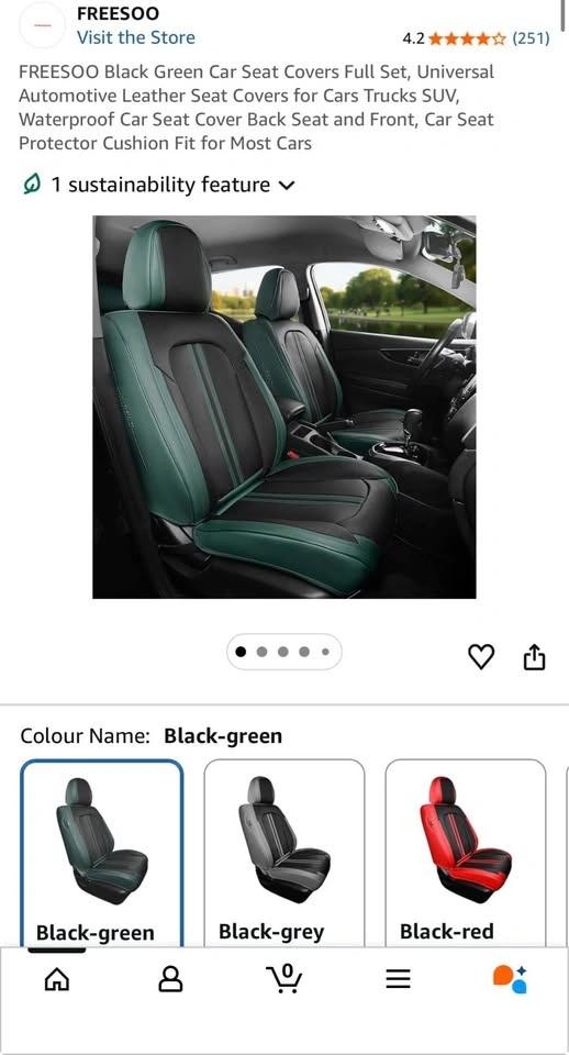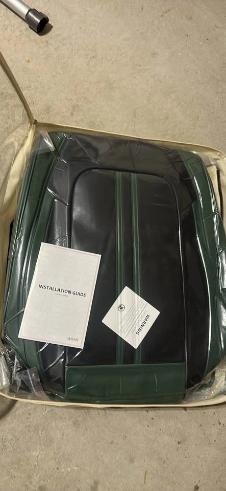 Brand new black and green car seat covers. Full set, universal fit for cars, trucks, and SUVs. Waterproof design for front and back seats. Protects your car seats. Fits most cars.