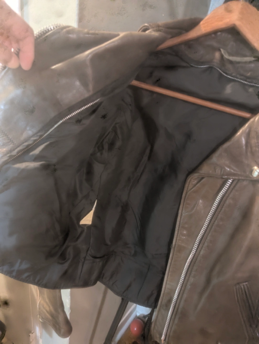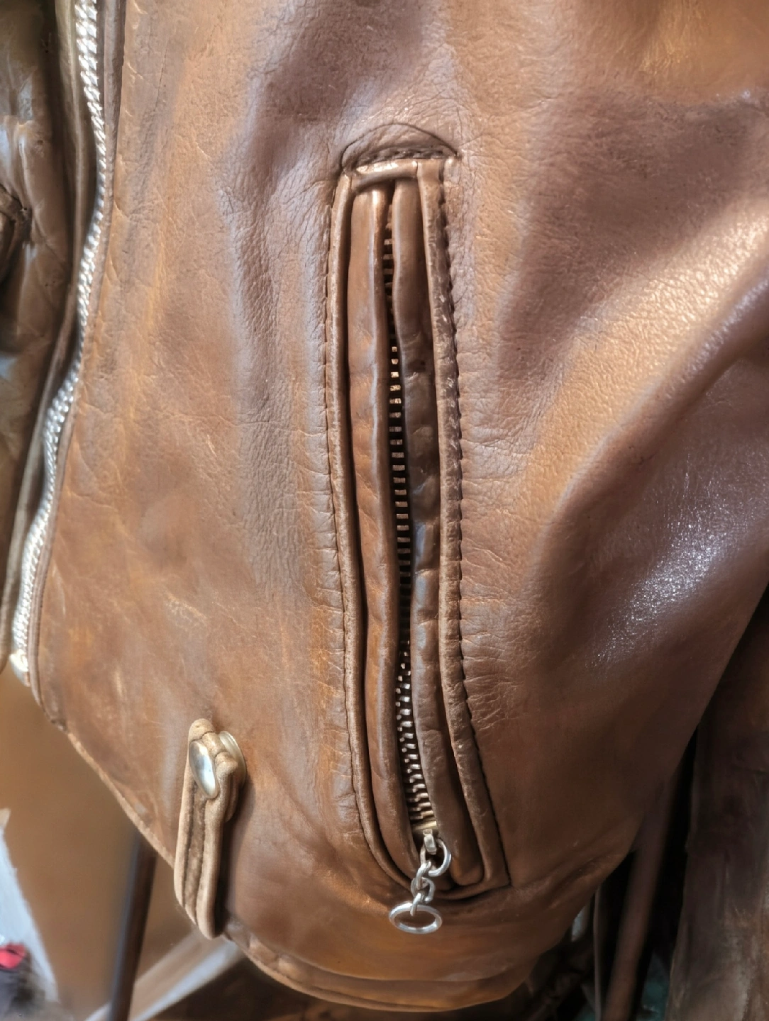 Selling a brown leather motorcycle jacket. It's a great looking jacket with a classic style. The leather has a nice worn look, giving it a vintage feel. Perfect for adding some edge to your wardrobe! Love this jacket but the sleeves are a bit short for me🙁. It's pretty heavy so it's suitable for different seasons. Hope someone gets to enjoy it as much as i did.