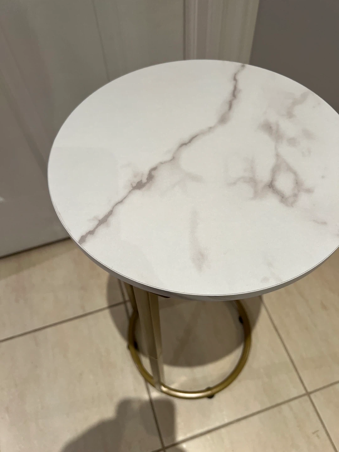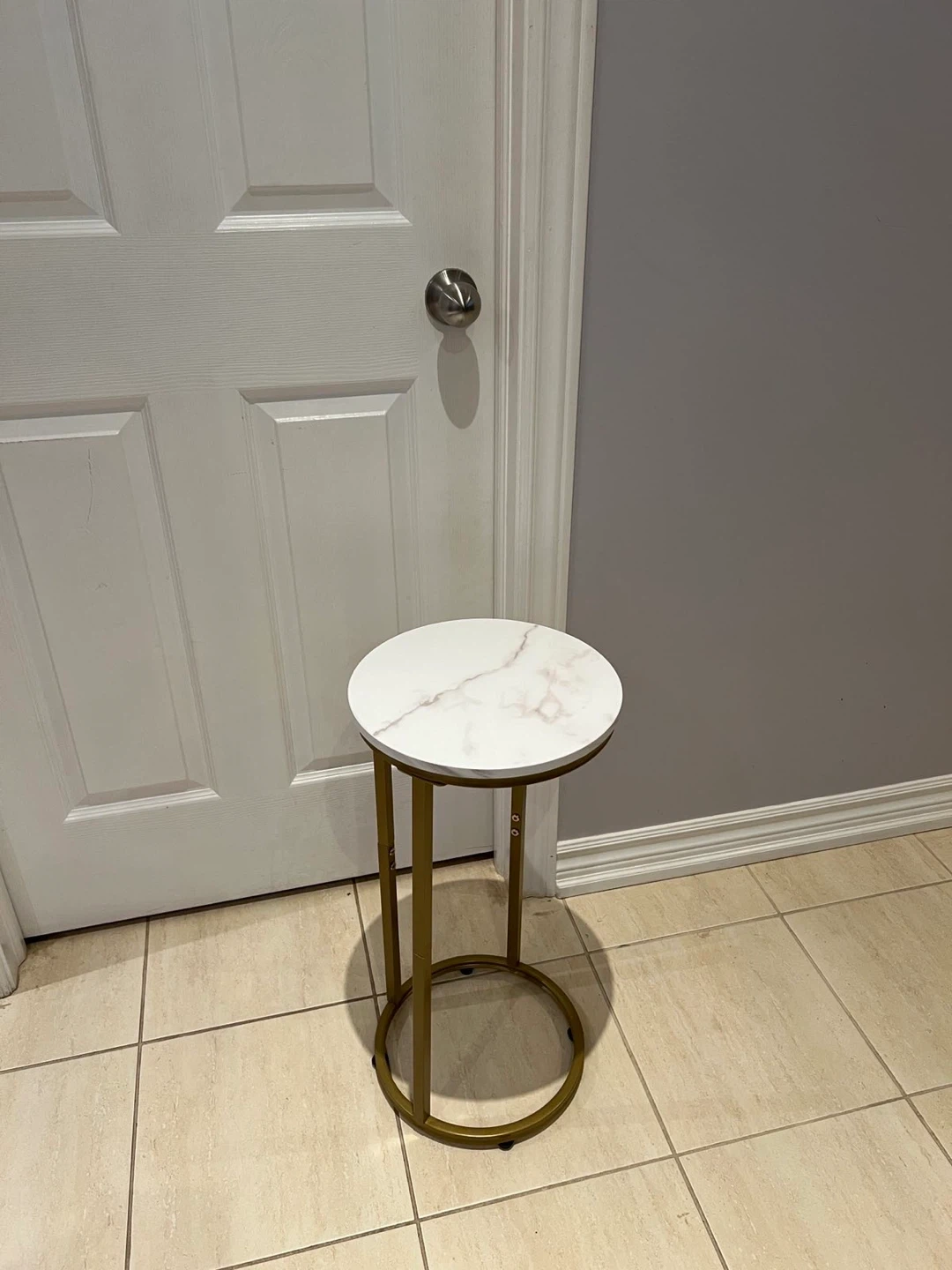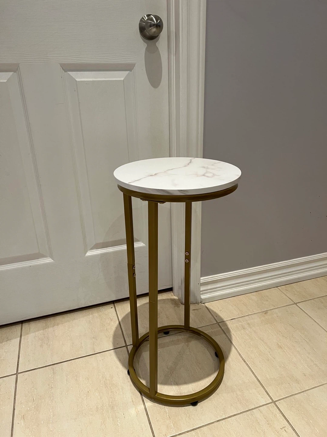 Selling a cute accent table with a faux marble top and gold finish legs. It's about 26 inches tall, perfect for adding a touch of style to any room!