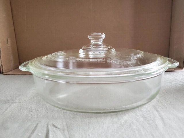 Buy & SellVintage Fire King CasseroleVintage Fire King Casserole$10A vintage Fire King casserole dish. The dish is clear, marked 8", and the lid has a nice etched design. $10.00, pick up only.WHERE TO MEETCheck LocationView MapSELLERNicDanforth E York292 reviews0 chats·0 favorites·9 views
