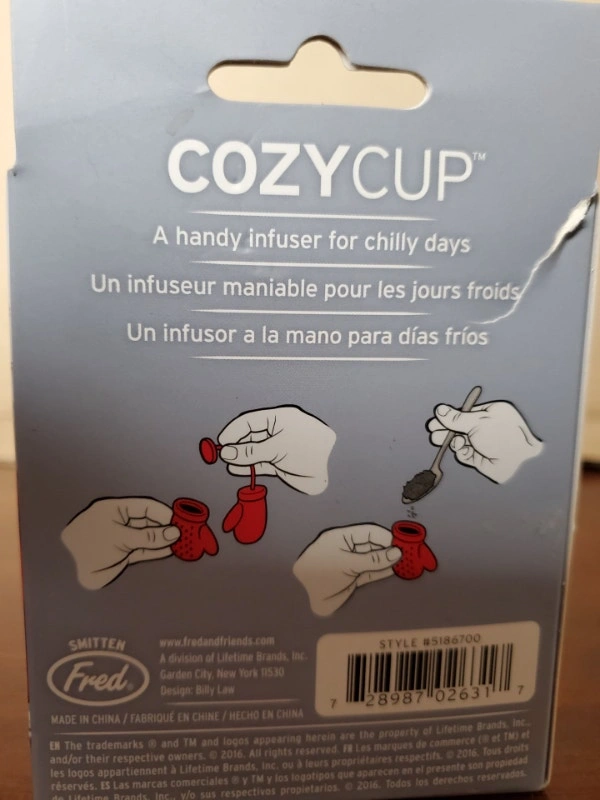 A new, unused tea infuser by Fred. Shaped like Red Mittens, the tea infuser is in the original box. $5.00, pick up only.