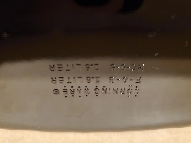 A vintage Corning Ware Classic Black (French Black) divided casserole dish. It's model F-6-B, 1.8 litre and comes with a lid. The dish itself is in perfect condition, the lid has a slight rough spot (tiny chips) on one outside edge. Can't really see the chips, but you can feel a rough spot. Doesn't affect function.