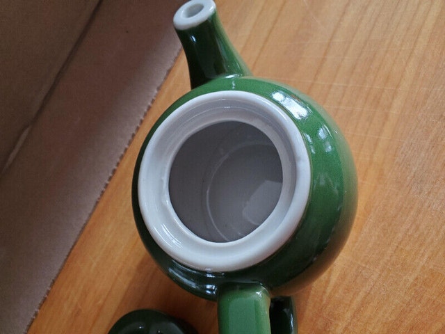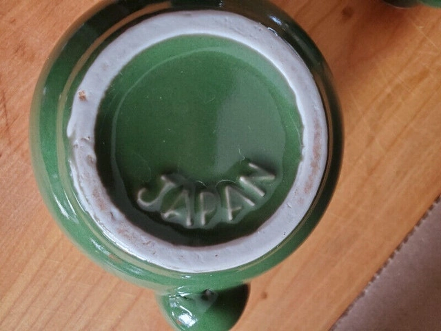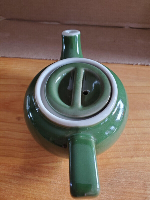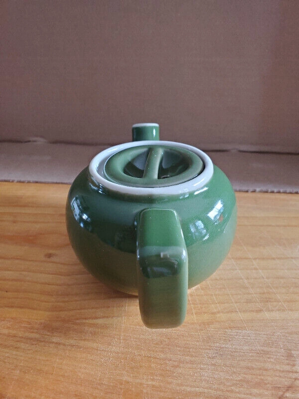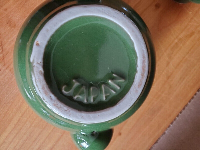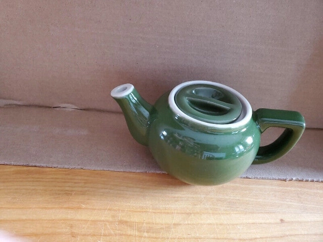 A small vintage green teapot suitable for a single cup of tea. Nice condition, with a dark green glaze, reading 'Japan' on the bottom. Can shown for scale. Asking $5.00, pick up only.