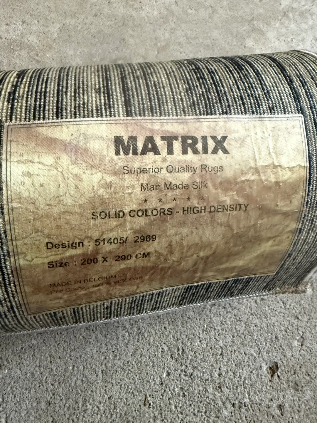 It's made of man-made silk with solid colours and high density. The size is 200 x 290 cm