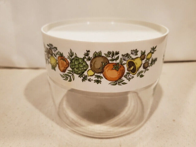 0Small vintage pyrex Spice o' Life Canister. Glass canister, plastic lid with the spice o' life pattern. The glass is marked "Pyrex, made in the USA". Asking $10.00. Pick up only