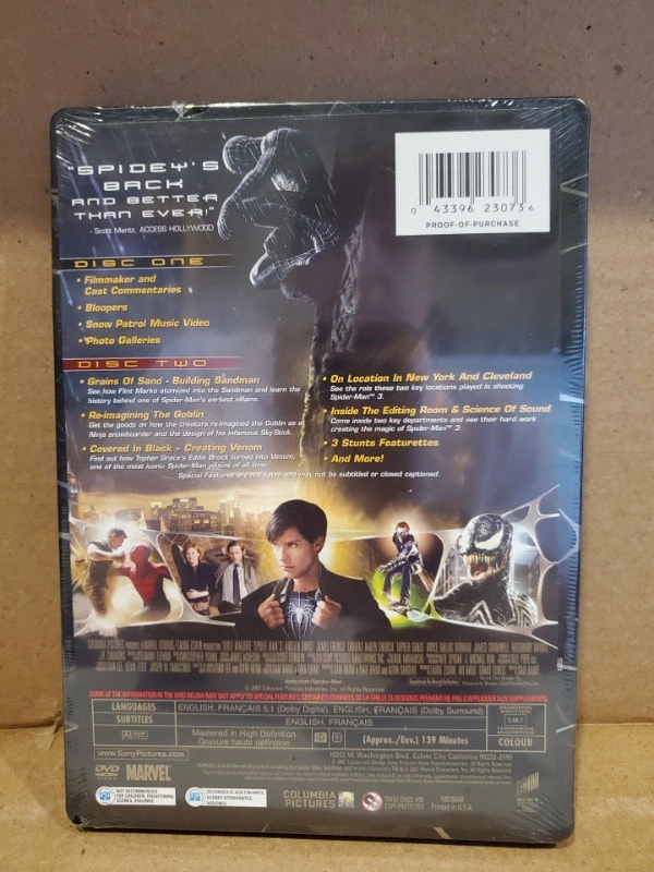 10A new, still sealed Spiderman 3 two disc special edition. It's in a metal case. Asking $10.00, pick up only.