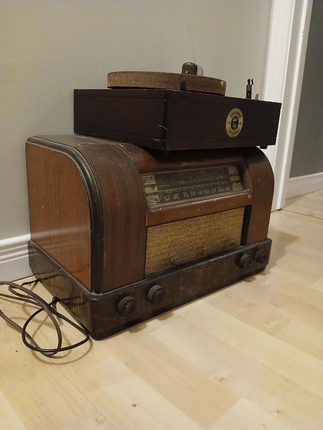 Selling a vintage Columbia record player and radio unit. It plays 33 1/3, 45, and 78 RPM records. A cool piece for any vintage audio enthusiast!