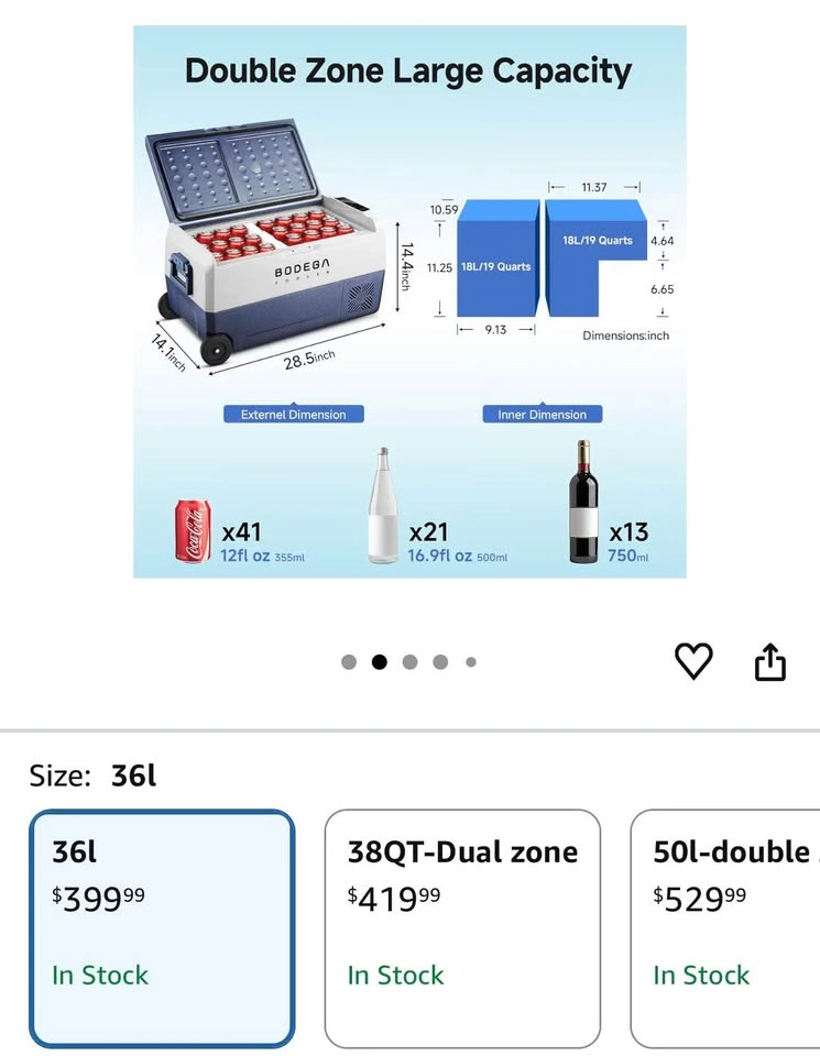 BODEGACOOLER 12 Volt Car Refrigerator,38 Quart Portable Freezer,Car Fridge Dual Zone APP Control,36L -4℉-68℉ Electric Compressor Cooler 12/24V DC and 100-240V AC for RV,Travel,Camping,Road Trip