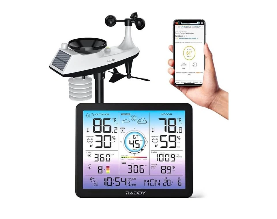 Raddy VP7 Wi-Fi Weather Station, 15-in-1 Wireless Weather Station Indoor Outdoor with Rain Gauge, Wind Speed, Temperature Humidity Monitor, Weather Forecast and Barometer, 7.4'' Digital Color Display