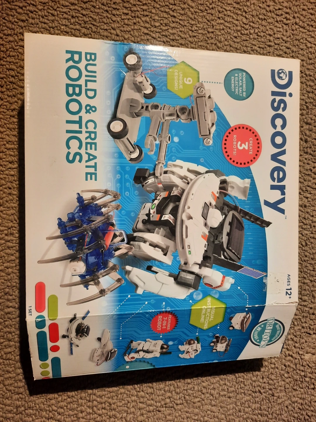 Put your robotic engineering skills to the test and assemble 9 of your own working robots with the award-winning Discovery Build and Create Robotics Kit! Explore 3 different energy sources - solar, salt, and electricity - while diving into the exciting world of robotics. Follow the fully-illustrated instructions to learn how to connect the pieces and transform them into tons of different robots that spin, walk, and even crawl! Build a spider robot that runs on electricity, a solar-powered robot that transforms seven different ways, and even a robot that runs on saltwater! The Discovery Build and Create Robotics kit is more than just a hands-on activity that strengthens and develops creative problem-solving skills, it makes learning fun for any aspiring robotics engineer ages 12 and up!