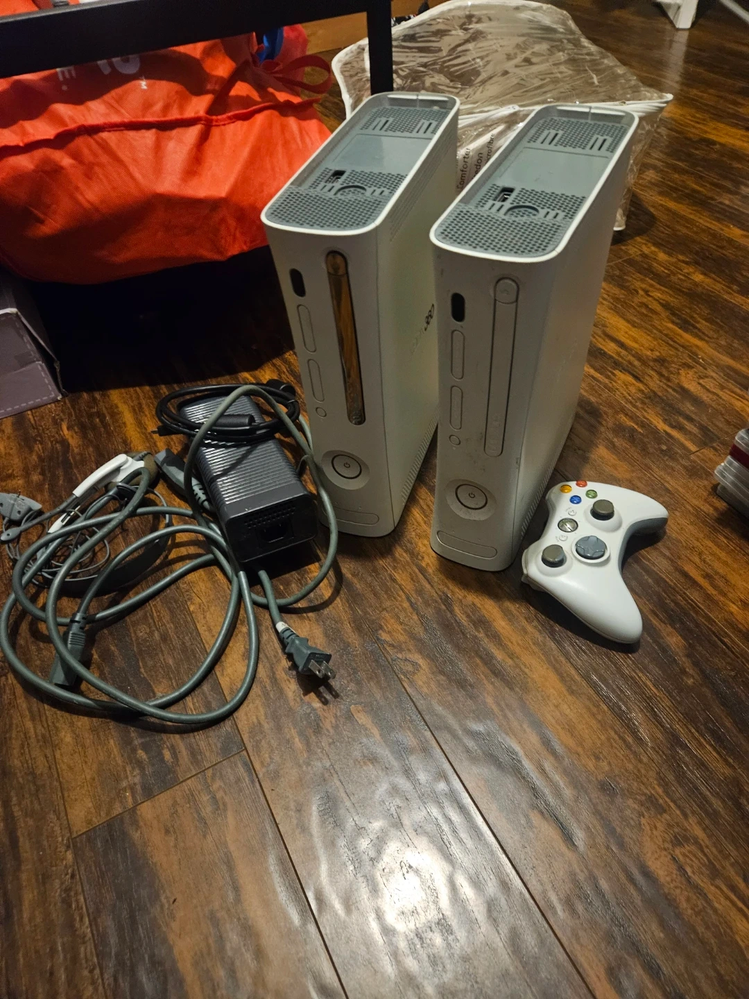 ☆2 XBox 360s with controller/old school headset/All Cords (Haven't tested them)