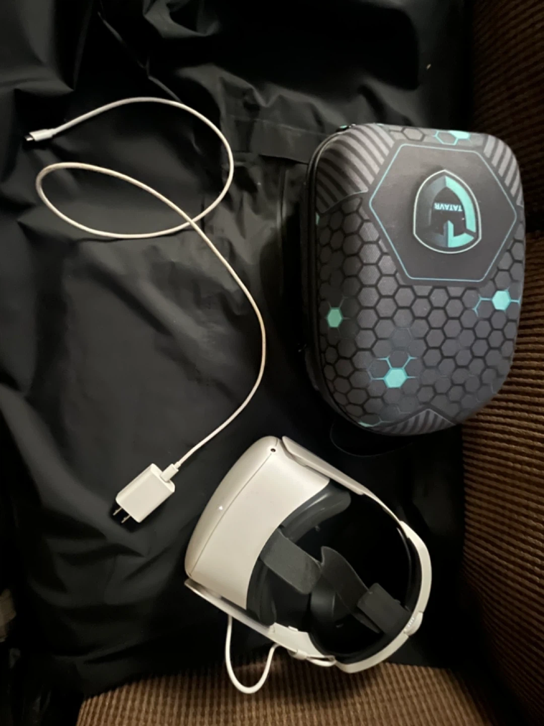 Selling a Meta Quest 2 VR headset. It comes with the controllers, charging cable, and power adapter. Also includes a carrying case to keep everything safe and organized
