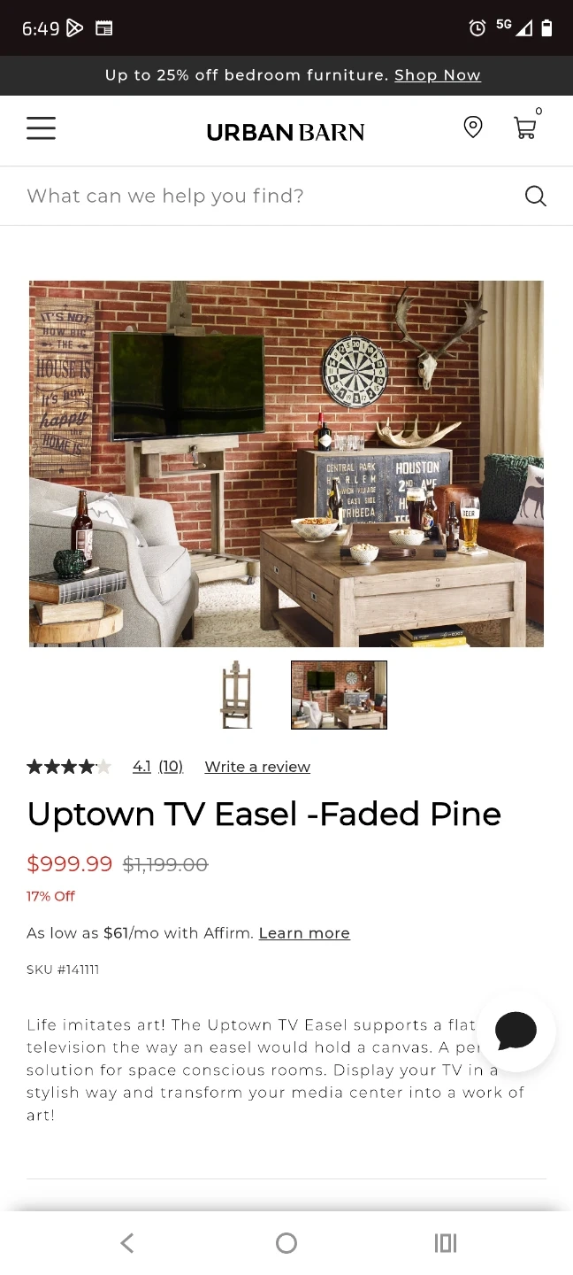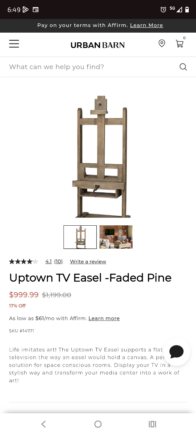 Looking to sell an Urban Barn Uptown TV Easel in the Faded Pine finish! This easel supports a flat television like an easel would hold a canvas. It's a perfect solution for space-conscious rooms.
