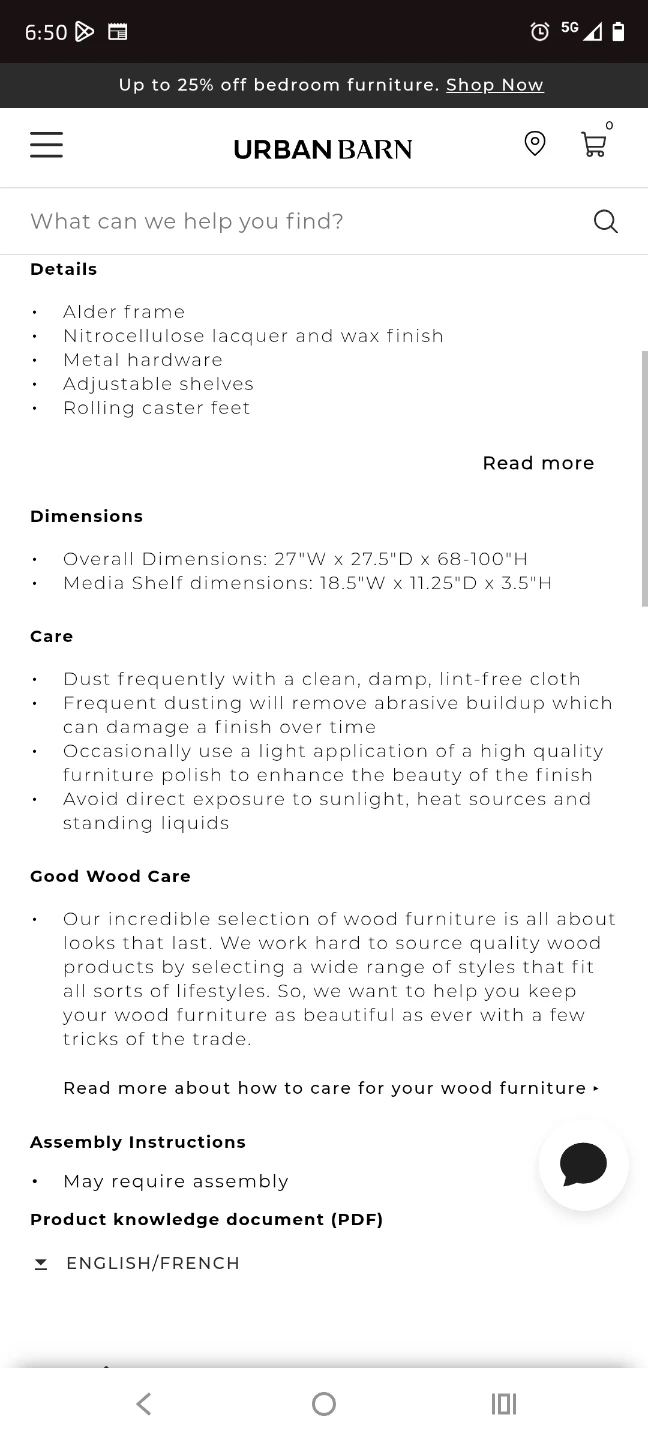 - Media Shelf: 18.5"W x 11.25"D x 3.5"H