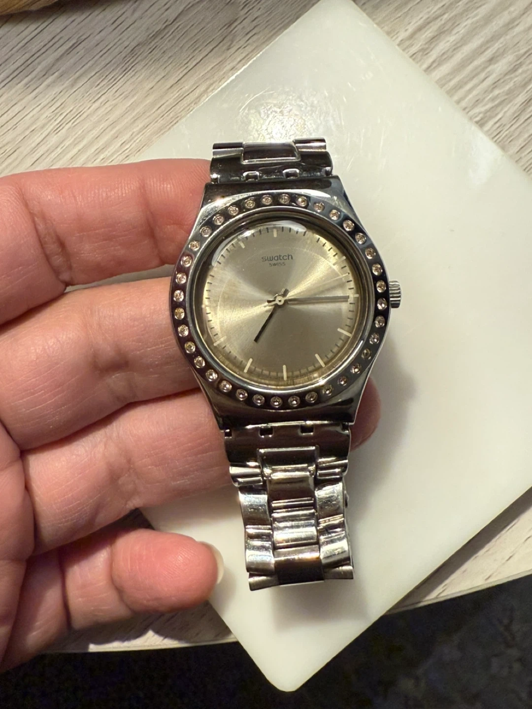 Swatch Irony stainless steel watch in great condition! It's a stylish and durable timepiece perfect for everyday wear. The watch is made of stainless steel and is water-resistant.