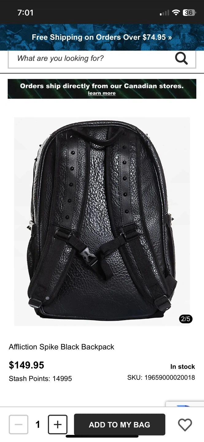 Selling an Affliction Spike black backpack. It features a cool skull and wings design, along with some edgy spike detailing. Originally bought for $150