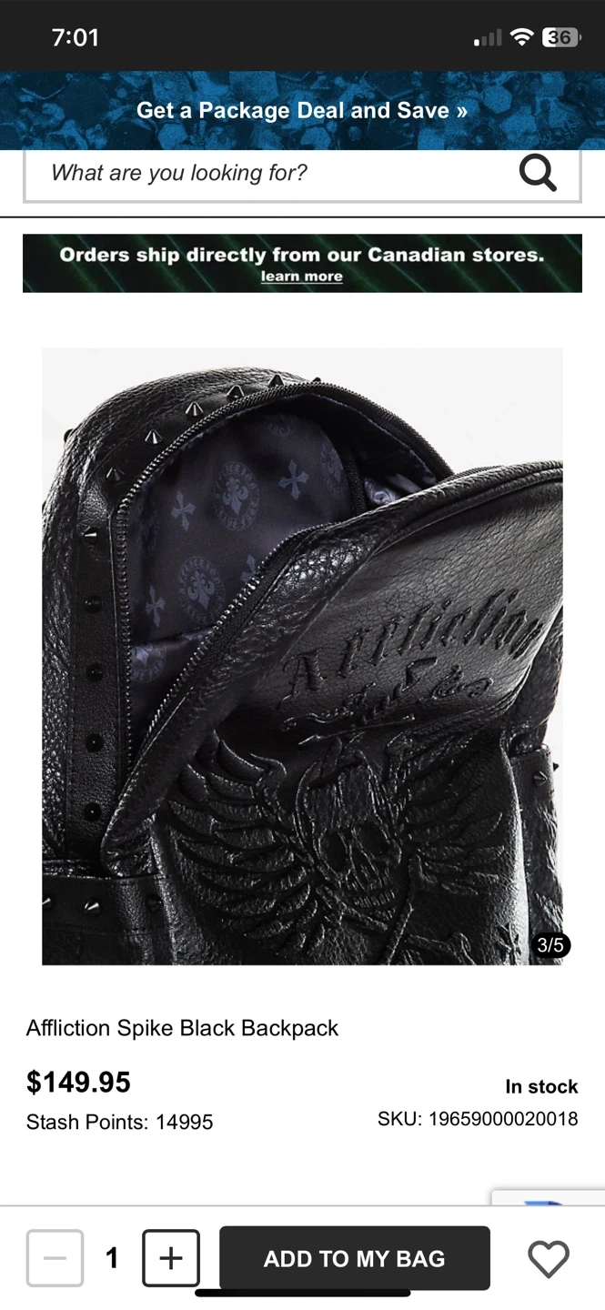 Selling an Affliction Spike black backpack. It features a cool skull and wings design, along with some edgy spike detailing. Originally bought for $150