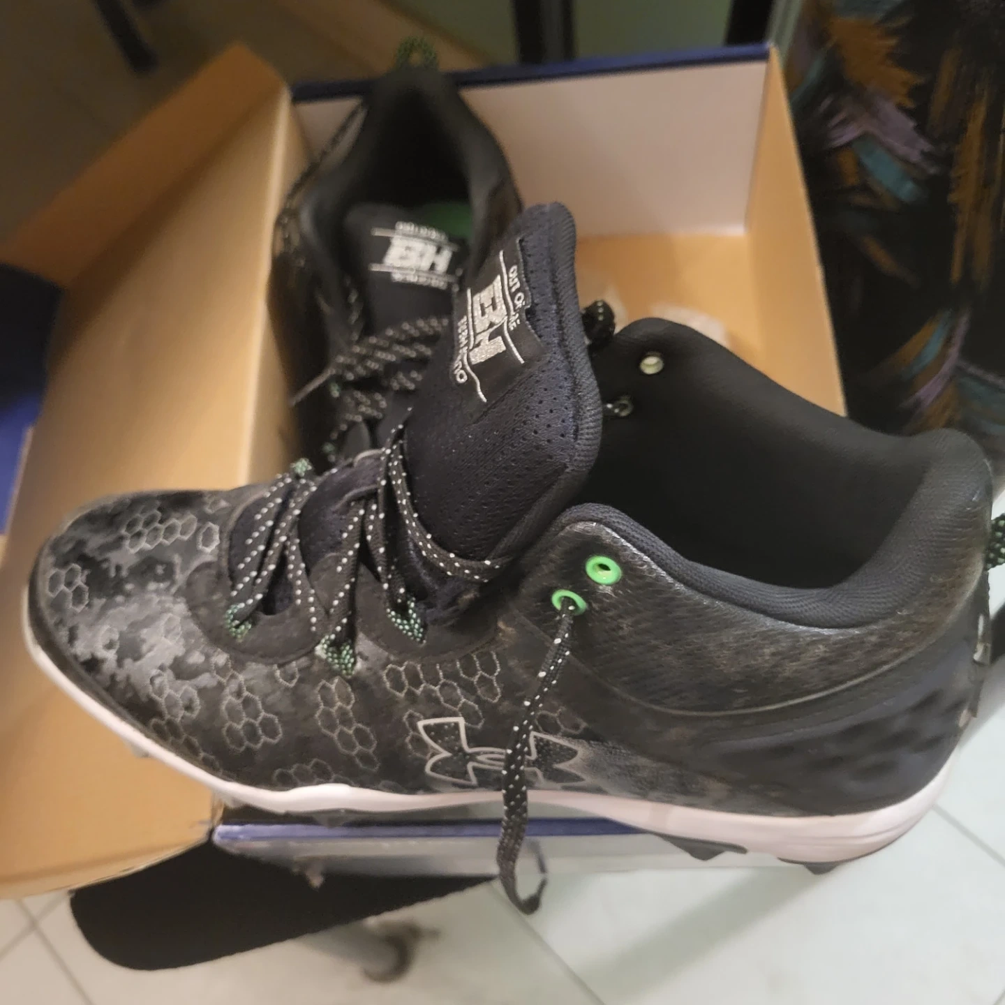 Selling a pair of Under Armour BH Harper 8 RM baseball cleats in black! They come with the original box. These cleats are in good condition and ready for the field