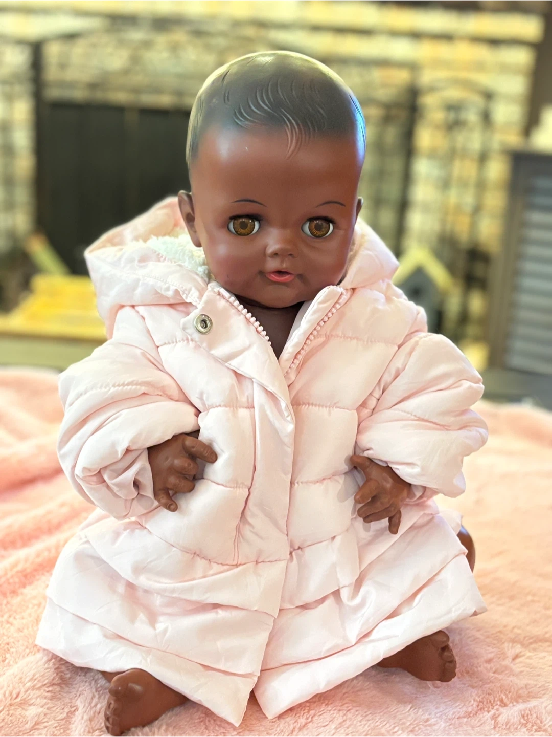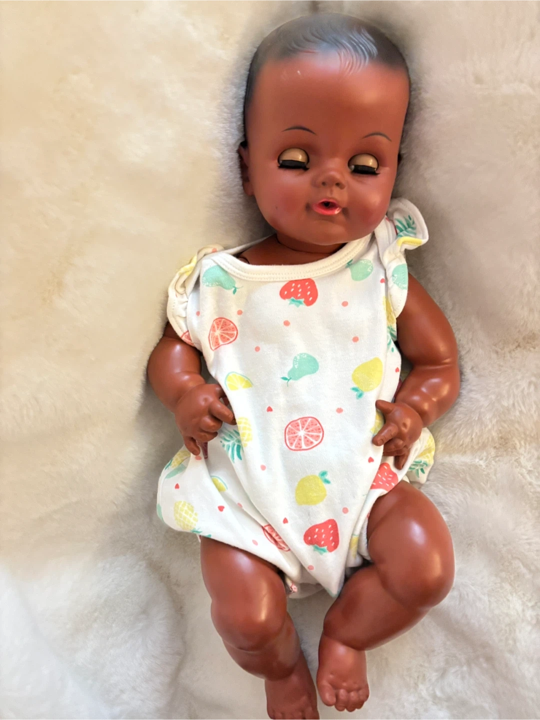 Meet this sweet 19.5β brown-skinned doll made by Regal Canada (209 BD)! She has open and close eyes, full eyelashes, and even looks like she can suck her thumb π - perfect for realistic play or collecting.