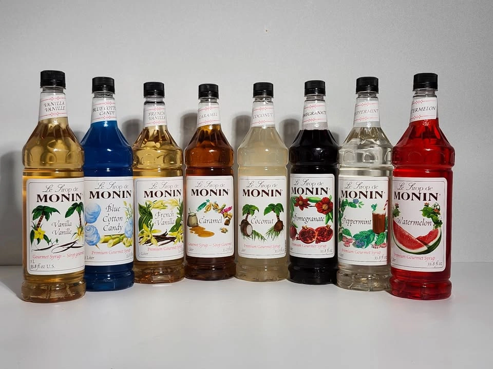 Monin Gourmet Syrups — Premium 1L bottles, perfect for coffee, lattes, cocktails, smoothies, and desserts.