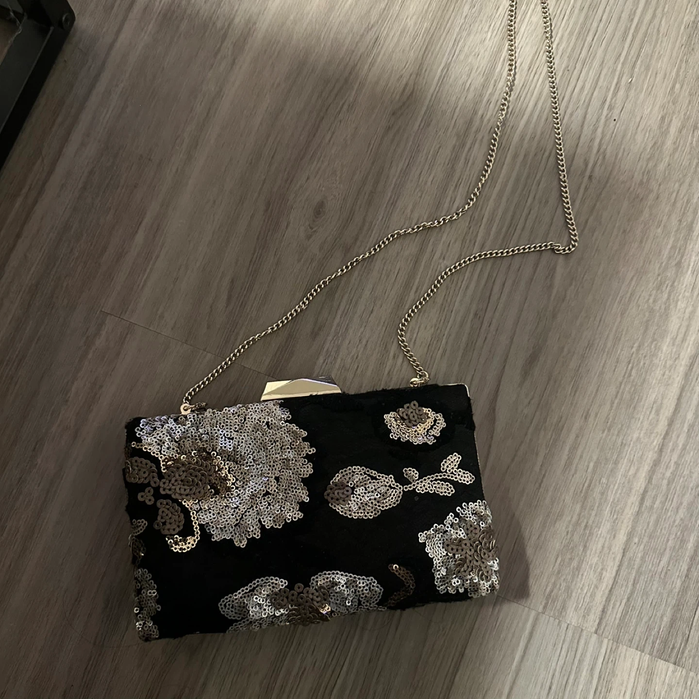 Selling a cute black clutch, perfect for evenings out! It features a beautiful sequin design and a convenient chain strap. It's in great condition originally bought from Ever New