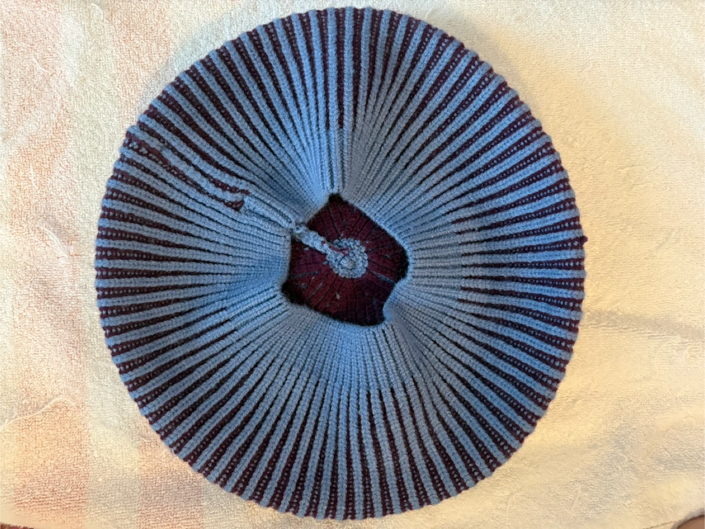 A new knitted beret in a lovely combination of blue and purple. It's in great condition and ready to keep you warm and stylish!