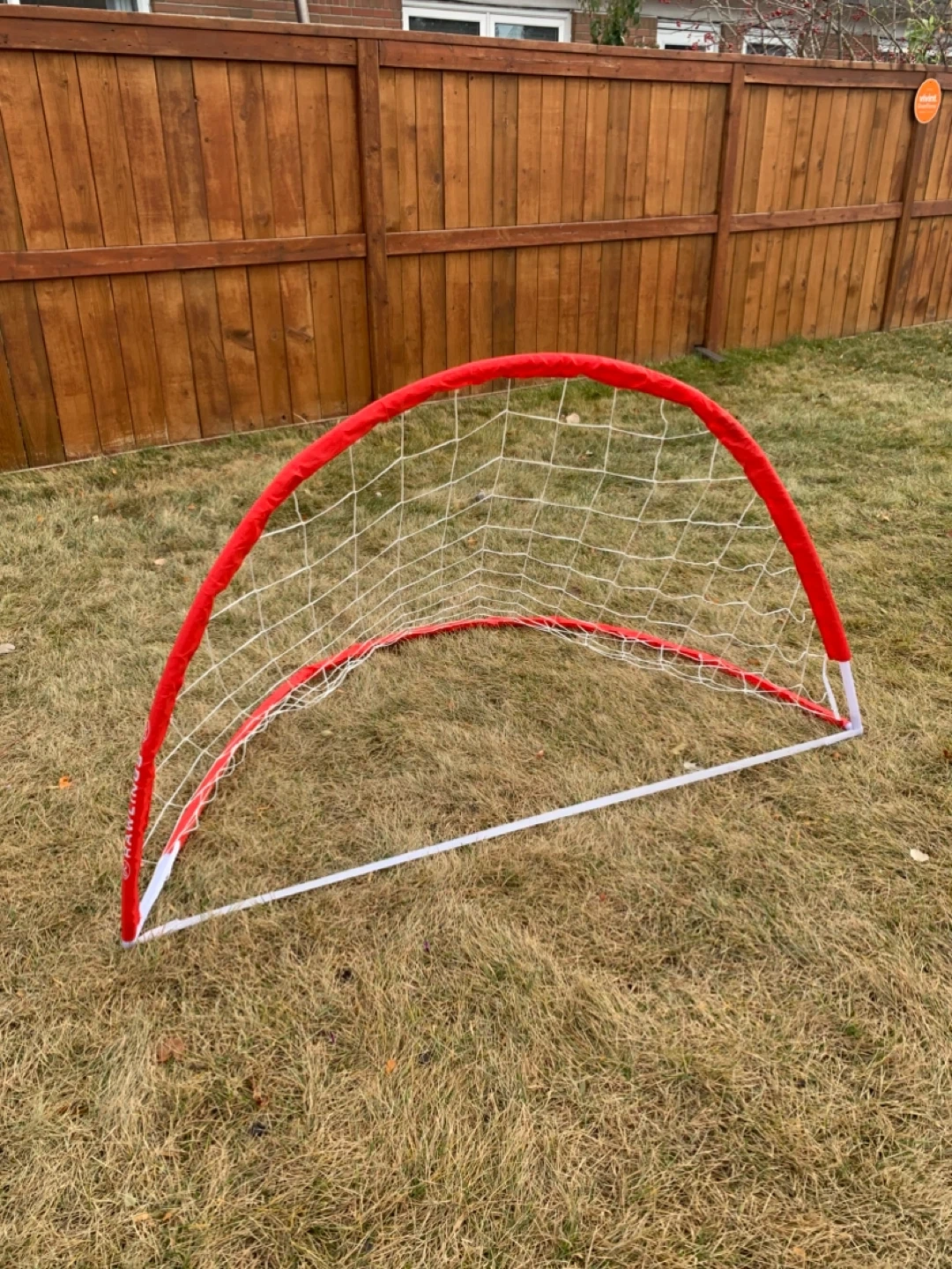 Selling a Rawlings portable soccer goal. It's in good condition and ready for some fun in the backyard or park. The frame is red and white, and it's easy to set up and take down for storage