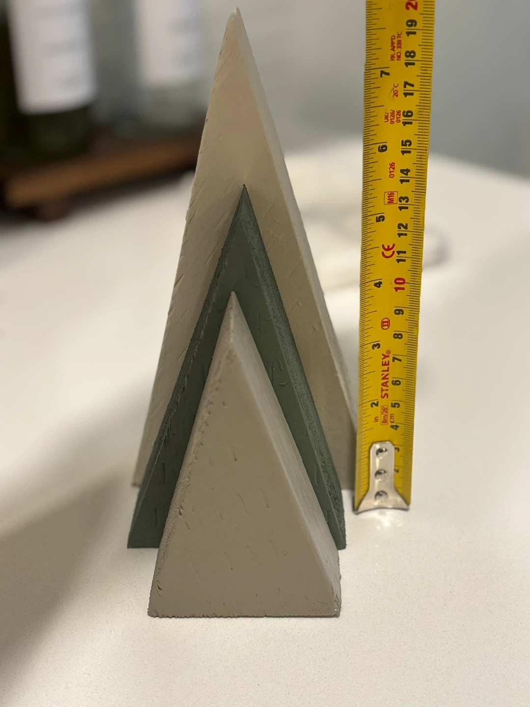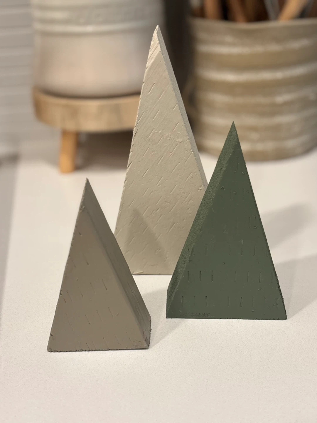 Here's a cute set of three triangle-shaped Christmas trees for your holiday decor! They come in different sizes and neutral colours, perfect for adding a touch of festive cheer to any room