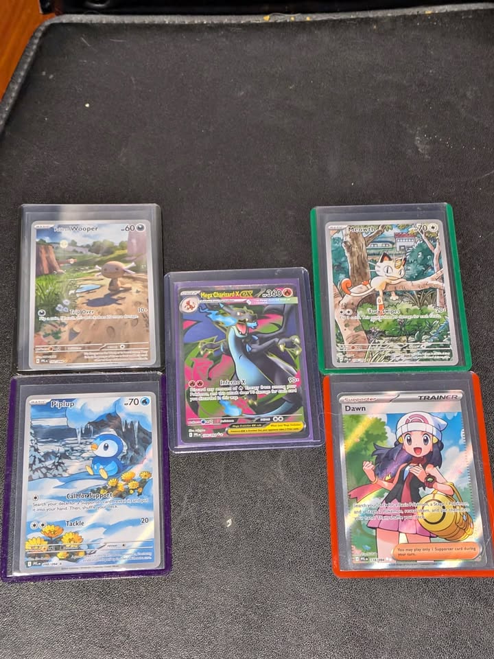 All cards are freshly pulled from the new Phantasmal Flames set. Each card is Near Mint / Pack Fresh, sleeved immediately, and stored properly. Available individually or as a bundle. Pickup in Richmond; meetups available in Vancouver. 🔥 Available Cards & Prices: Mega Charizard X EX – $120 Meowth – $65 Piplup – $55 Dawn – $35 Wooper – $25 Cards are authentic, clean, and ready for collectors or grading. Message if you’d like more pictures or want to bundle multiple cards.