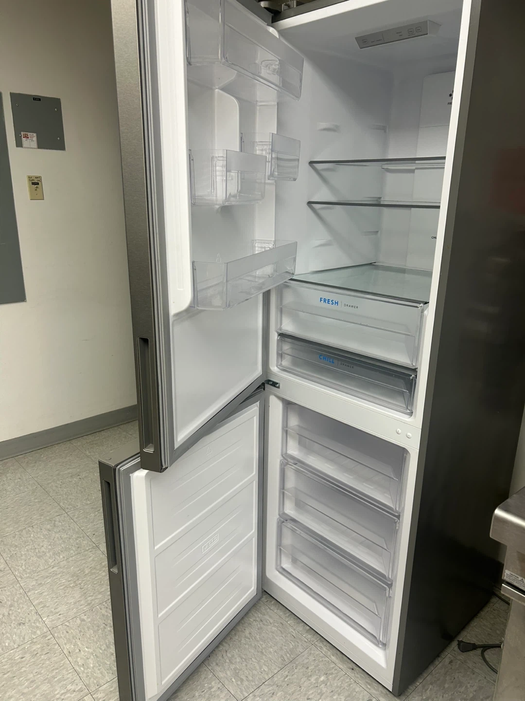 Selling a Frigidaire fridge with a stainless steel finish. It has a bottom freezer and adjustable shelves inside. Great for any kitchen!