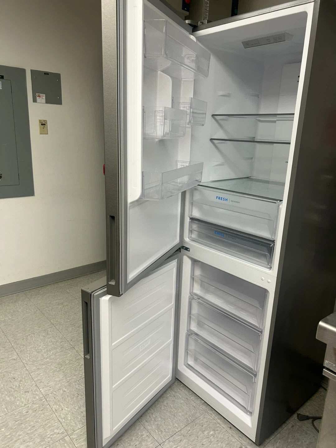 Selling a Frigidaire fridge with a stainless steel finish. It has a bottom freezer and adjustable shelves inside. Great for any kitchen!