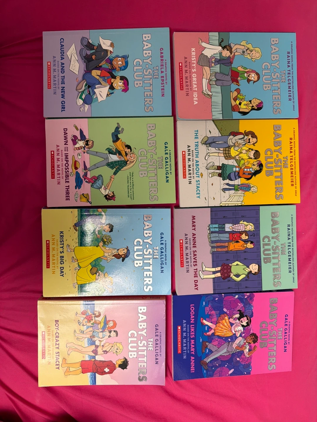 Selling a collection of The Baby-Sitters Club graphic novels! These are based on the novels by Ann M. Martin and adapted into graphic novel form by Raina Telgemeier, Gabriela Epstein, and Gale Galligan. Titles include: