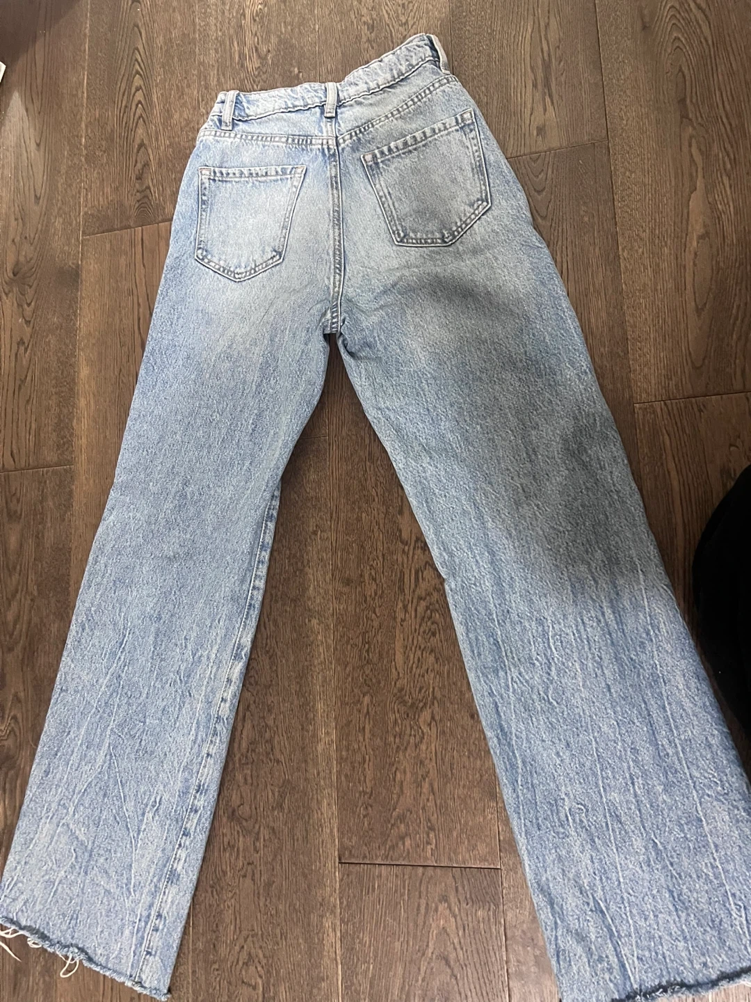 Selling a pair of Garage Denim jeans in size 0. They're a light wash with a ripped, wide-leg style. Perfect for a casual, trendy look!