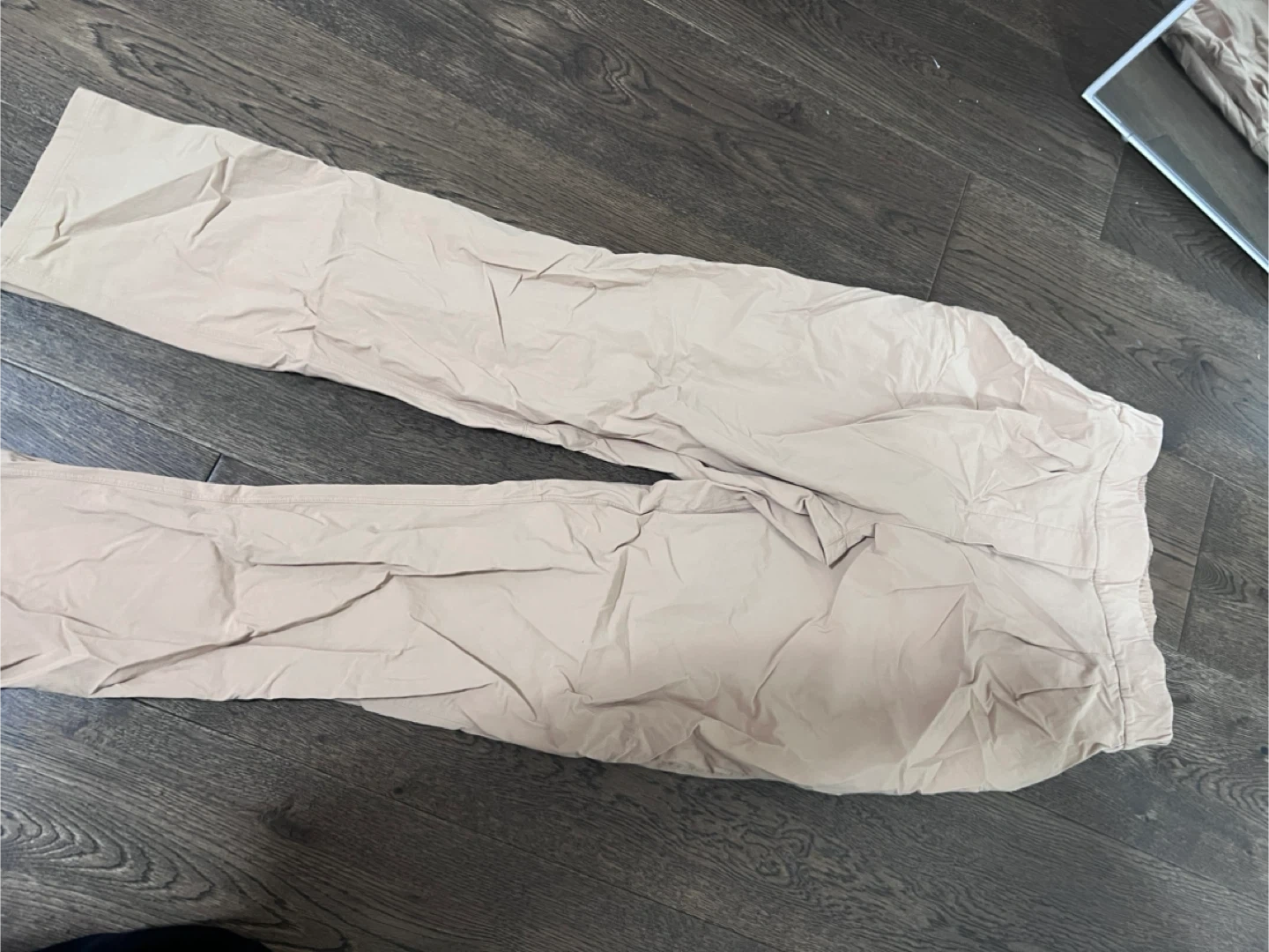 Selling a pair of Lululemon pants in size 4. They're a lovely neutral colour and made with a comfortable blend of nylon and elastane. Perfect for workouts or just lounging around! (let’s ignore how wrinkled they are, they have been hidden in my closet)