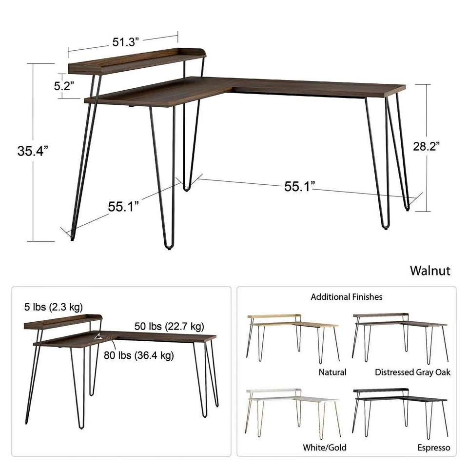 L shaped desk in Walnut color. Used but in great condition! Pickup from an elevator building in Hudson Heights. Can disassemble parts for easier transport.