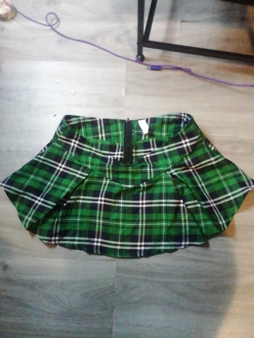 Here's a cute green plaid mini high skirt! It's in great shape and ready for a new home. Perfect for adding a bit of flair to your wardrobe or for any spicy occasion