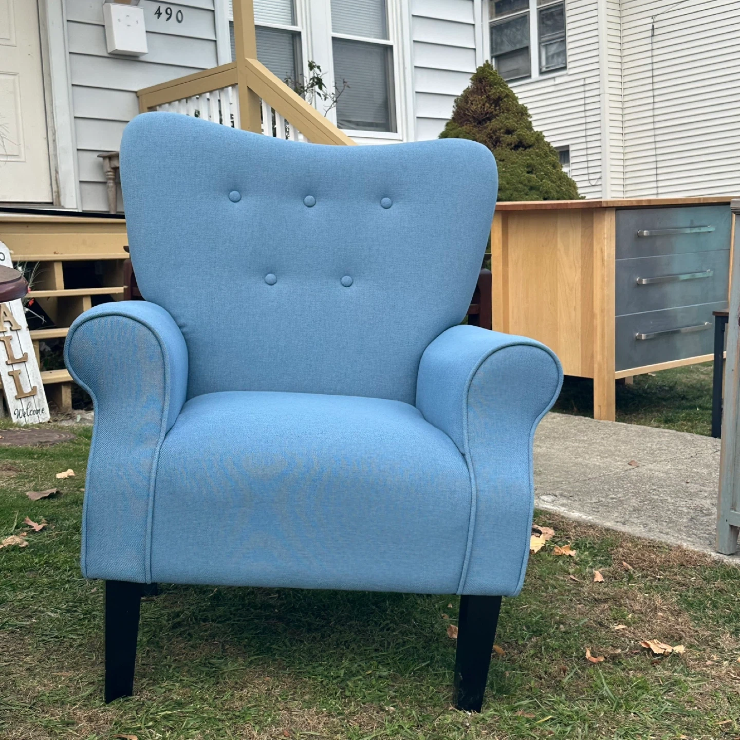 Selling a light blue armchair. It's in good condition and would be a great addition to any living room or bedroom