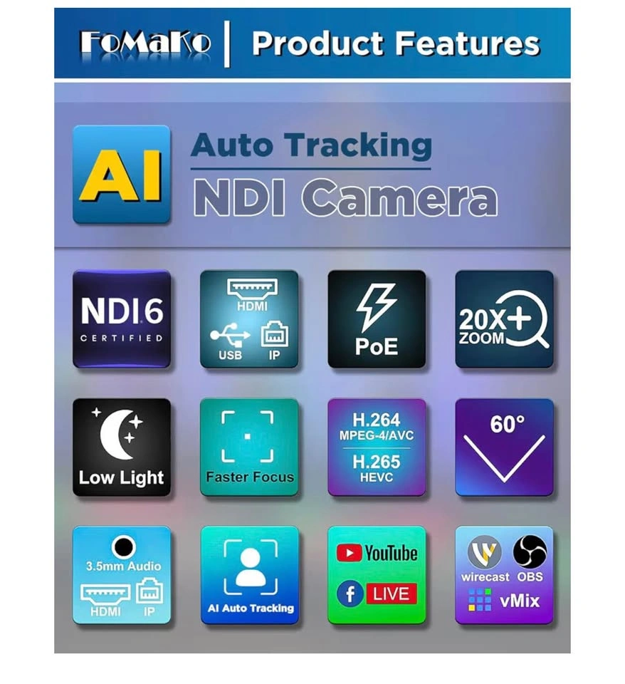 Buy & SellFoMaKo NDI Camera AI Auto TrackingFoMaKo NDI Camera AI Auto Tracking$310FoMaKo NDI Camera AI Auto Tracking HDMI PTZ Camera 20x Optical Zoom LAN USB3.0 HDMI for Church Services Worship Education, PoE 1080P60 FMK20UH NDIWHERE TO MEETCheck LocationView MapSELLERverifiedAlinaOliver651 review0 chats·1 favorites·10 views