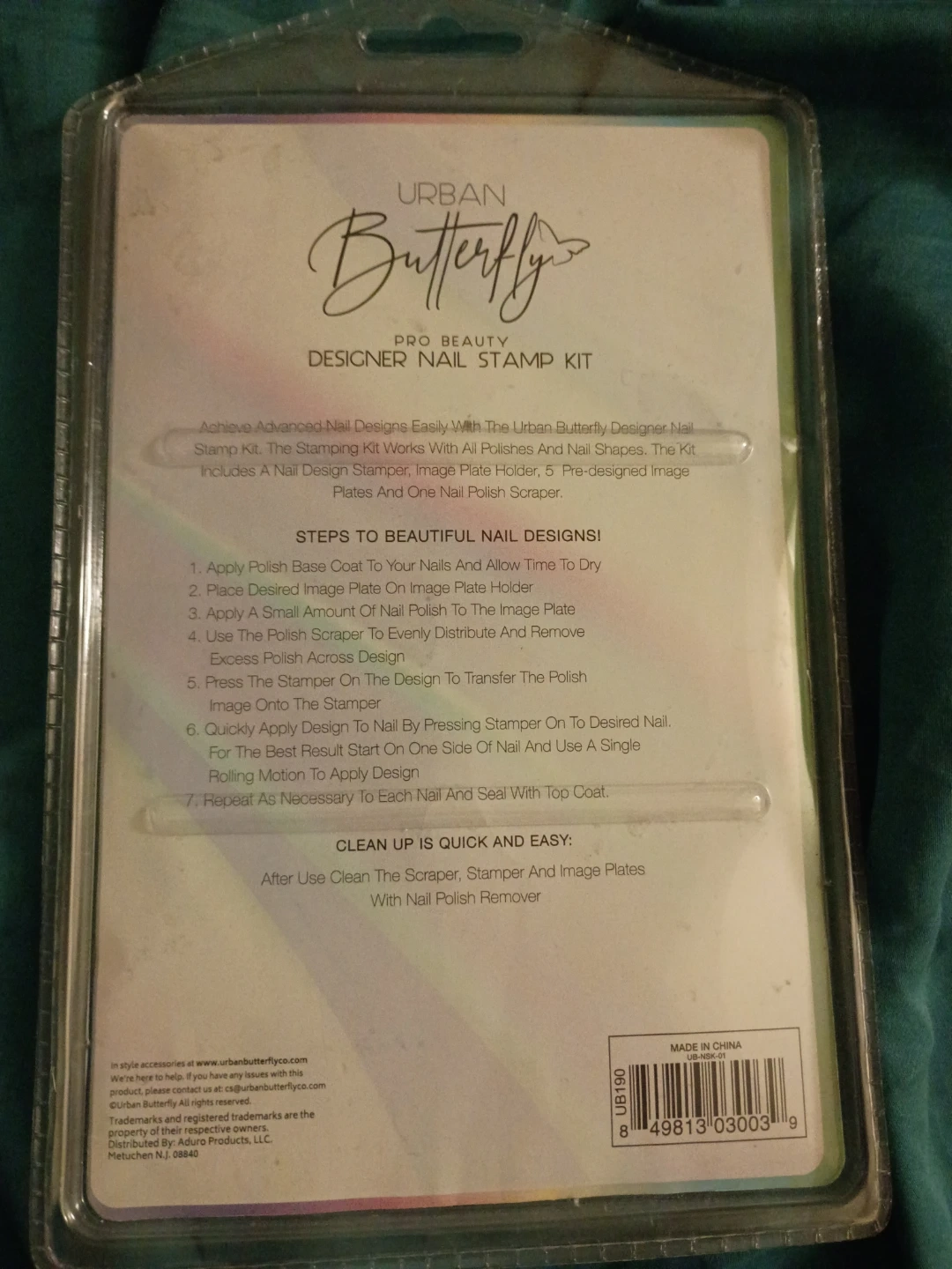 Achieve advanced nail designs easily with the Urban Butterfly Designer Nail Stamp Kit! The stamping kit works with all polishes and nail shapes. The kit includes a nail design stamper, image plate holder, 5 via-designed image plates and one nail polish scraper. Clean up is quick and easy. After use, clean the scraper, stamper and image plates with nail polish remover
