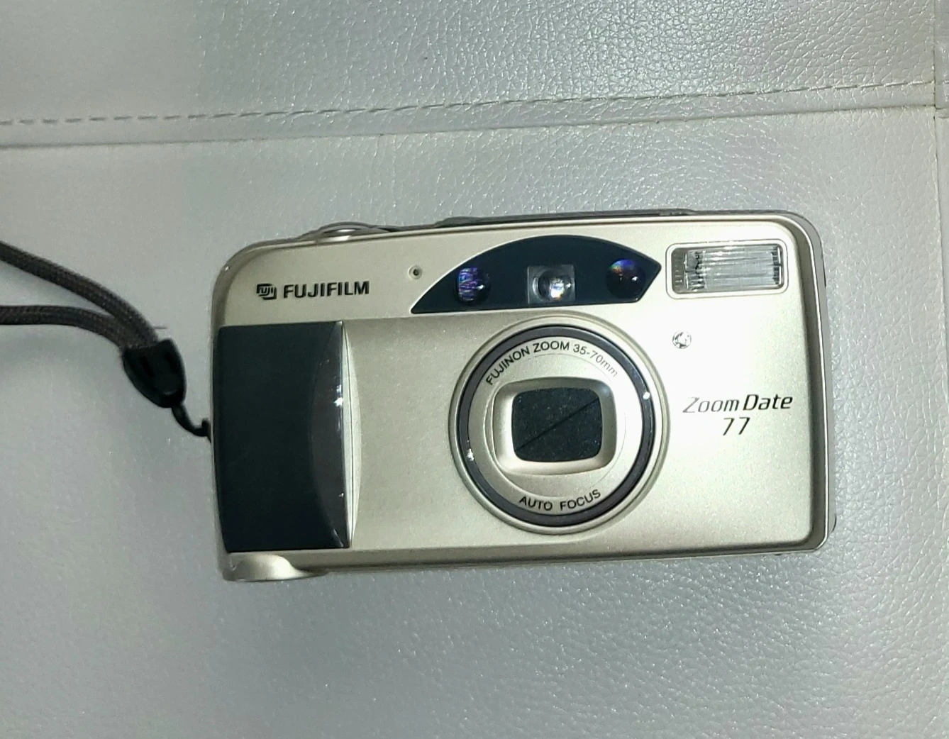 Selling a Fujifilm Zoom Date 77 film camera! It's in good condition and ready for your next photography adventure. It features a Fujinon zoom 35-70mm lens, perfect for capturing a variety of shots.