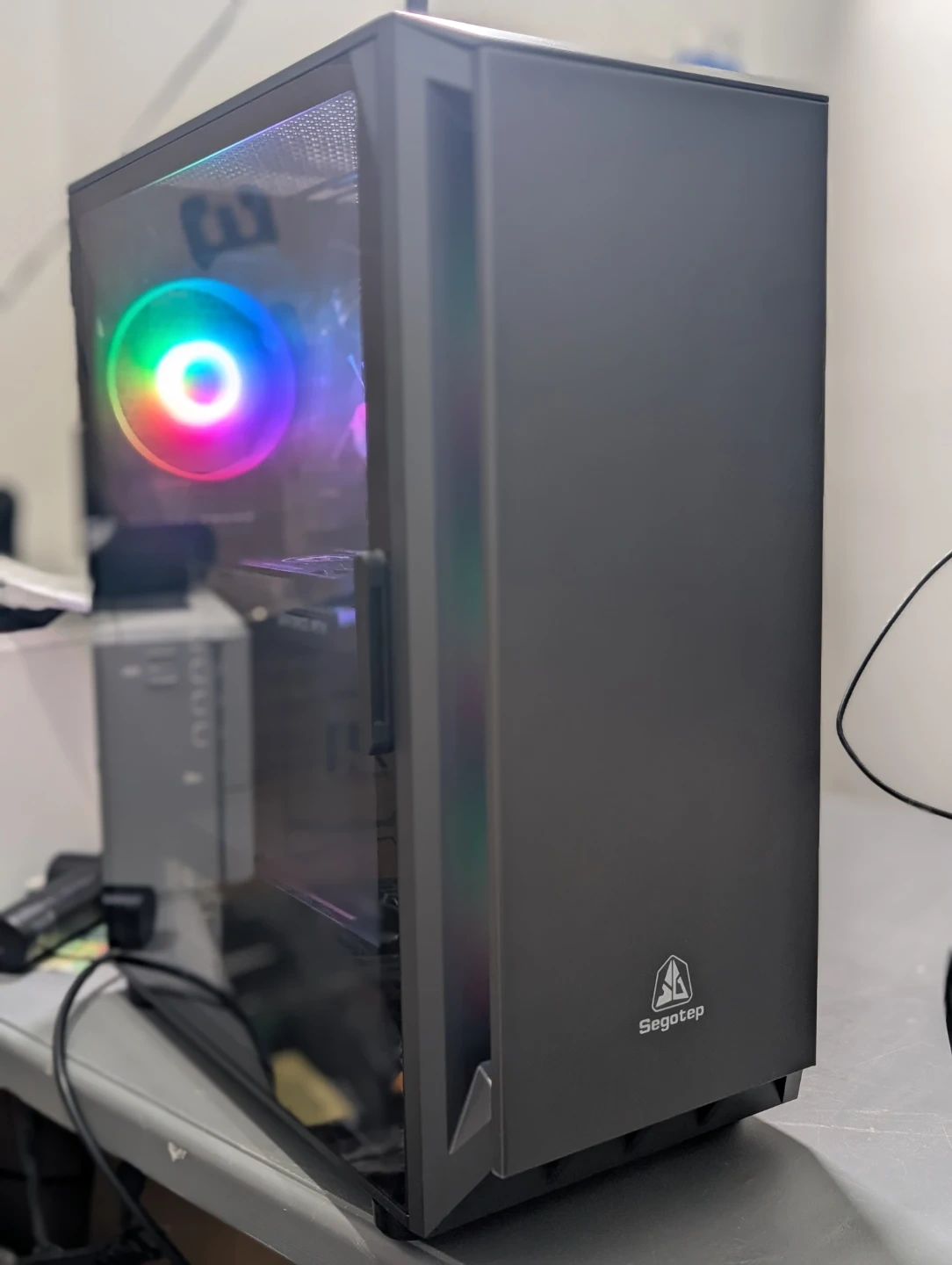 Selling Gaming PC It's in great condition and features a sleek design with good airflow. It has USB 3.0 ports and audio jacks on the front panel for easy access. The case also has RGB fans for a cool look!