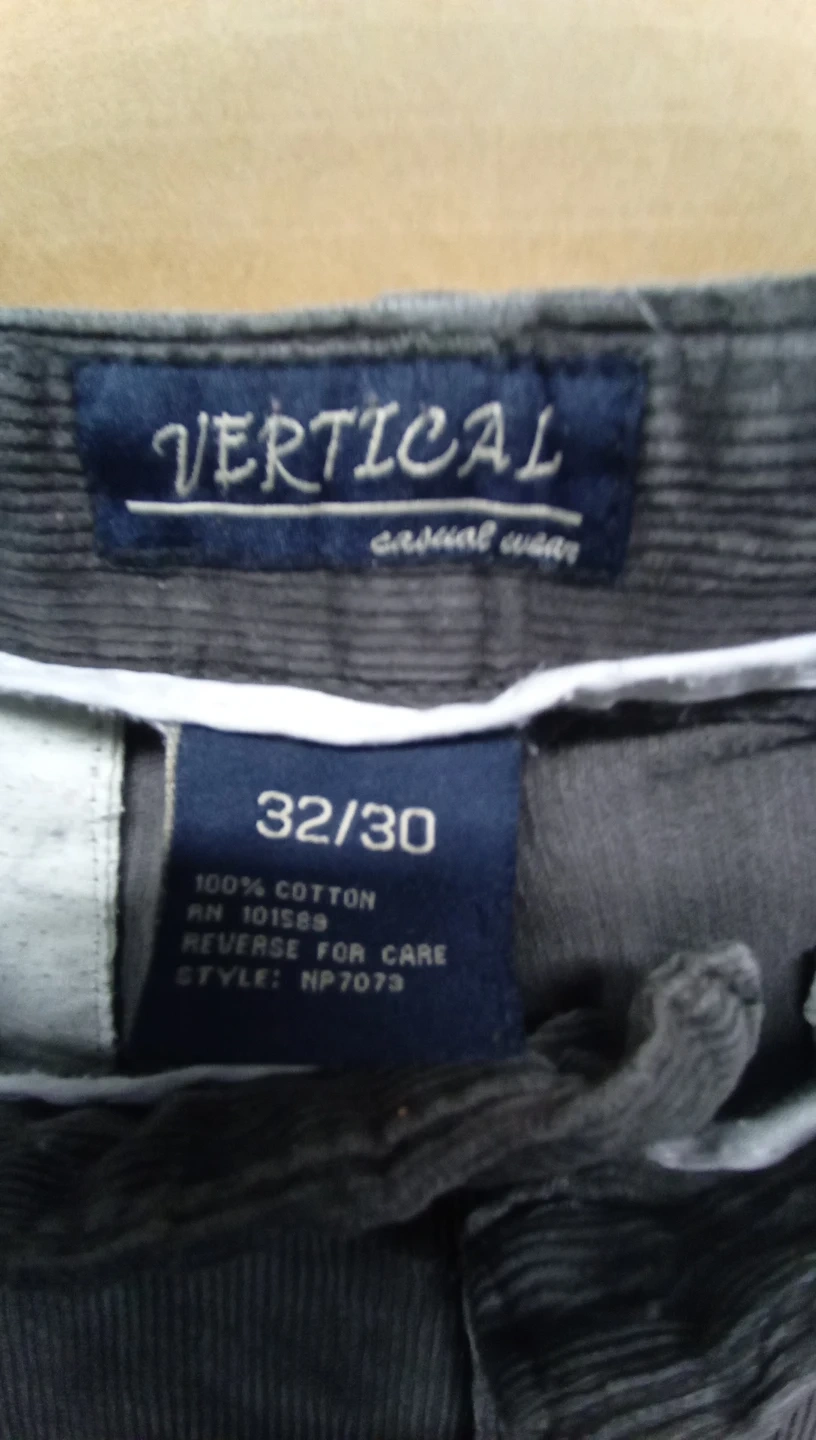 Selling a pair of Vertical Casual Wear corduroy pants. They are a size 32/30 and appear to be in good condition. Perfect for a casual look!