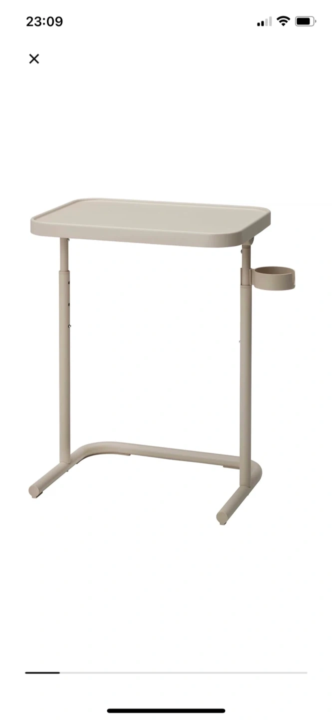607Not adjustable Selling a handy IKEA Björkåsen laptop table! The table top measures 46 cm (18 1/8") by 35 cm (13 3/4"), and the height is adjustable from 60 cm (23 5/8") to 70 cm (27 1/2").