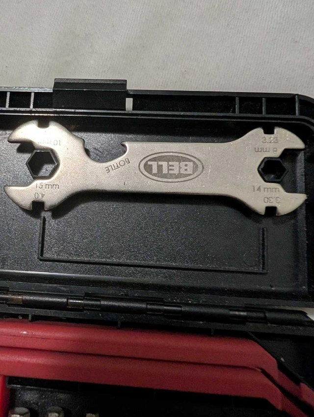 This Bell multi wrench is a versatile tool for any cyclist. It is used, but in good condition and ready to help with various bike maintenance tasks. Its compact design makes it easy to carry on rides. This multi wrench includes a variety of different sized wrenches and drivers, and comes in a hard plastic case. If the ad's still up, it's still up for grabs!