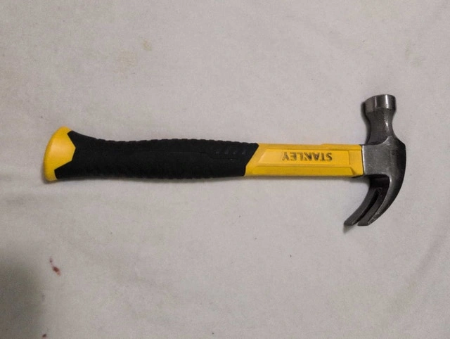 This is a used Stanley 16oz claw hammer with a black and yellow handle, perfect for various jobs around the house. The tool shows signs of wear. Great for your next project!