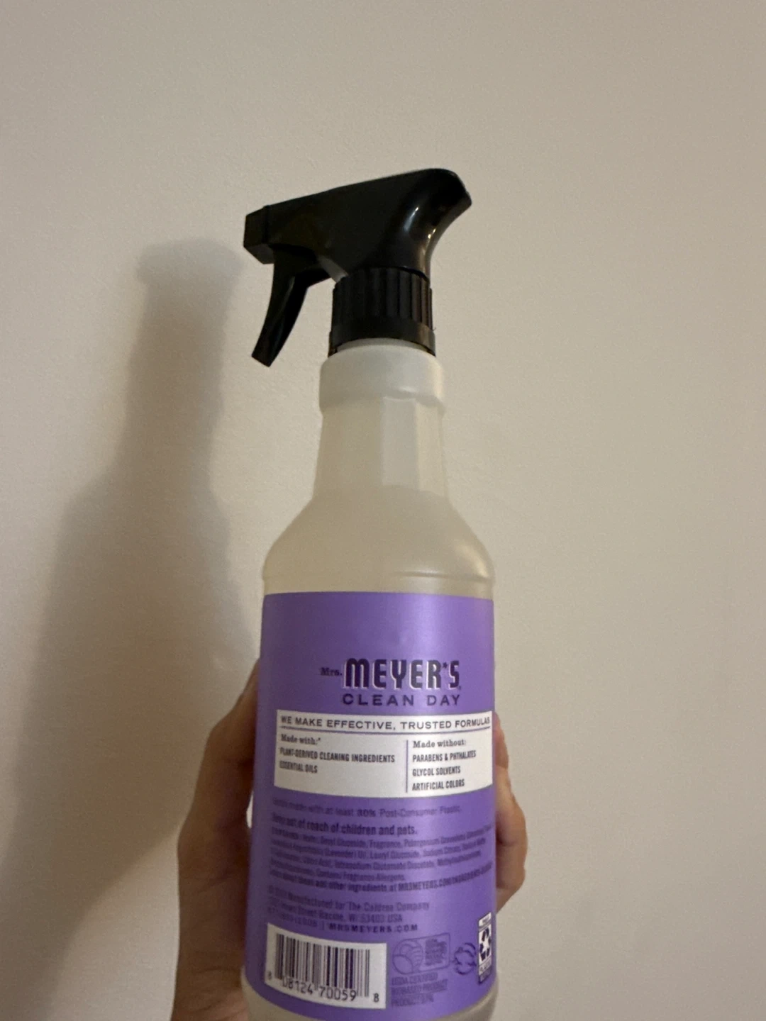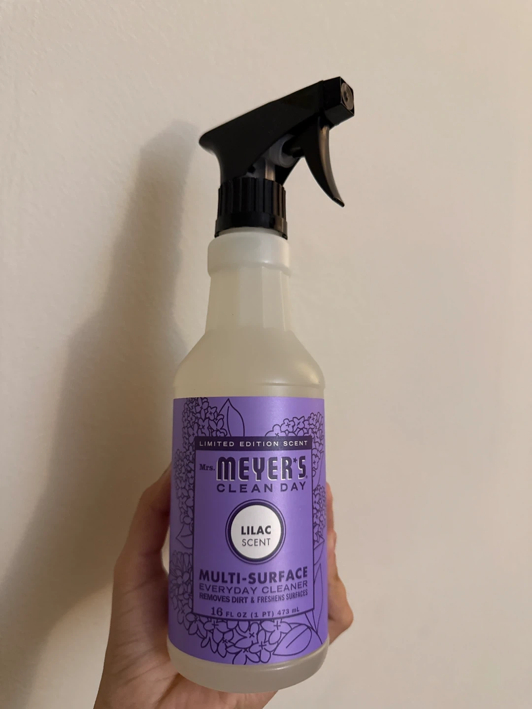 Selling a bottle of Mrs. Meyer's Clean Day multi-surface cleaner in the limited edition Lilac scent! This everyday cleaner removes dirt and freshens surfaces. It contains plant-derived cleaning ingredients and essential oils. It's made without parabens, phthalates, glycol solvents, or artificial colors. Perfect for cleaning around the house!