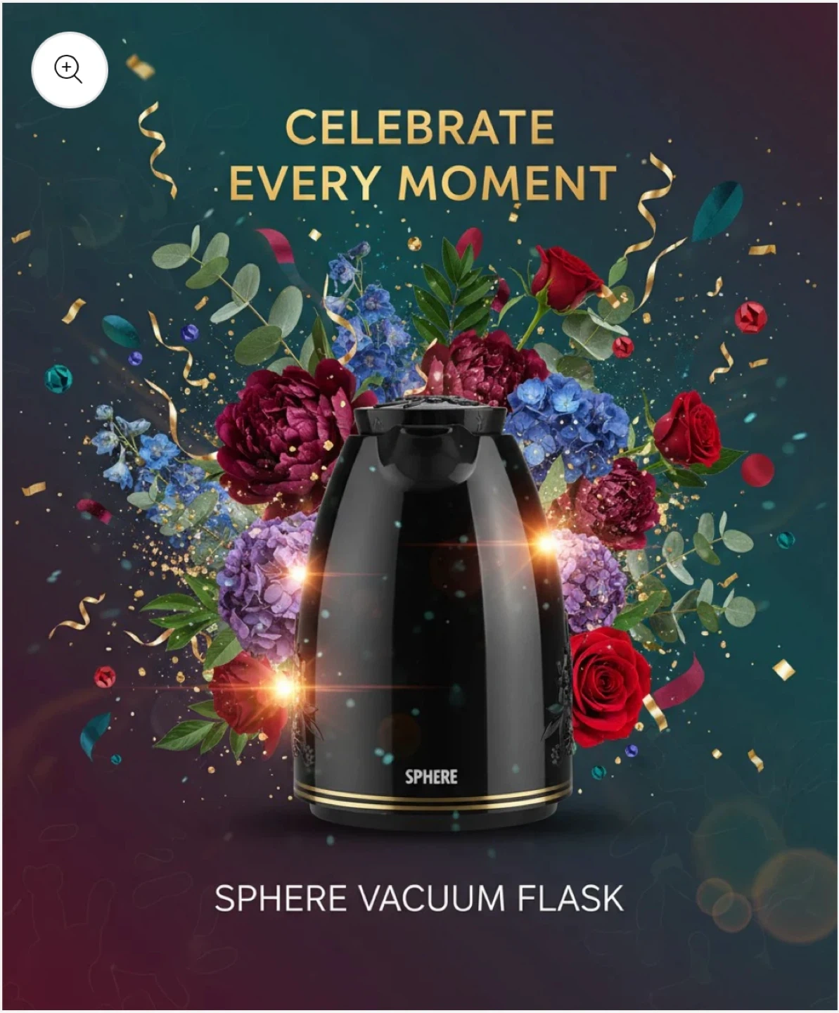 I have a Sphere Vacuum Flask for sale. It's premium quality and perfect for keeping your drinks hot or cold. It features a beautiful floral design and has a 2.0L capacity, model RGP15. Enjoy 24-hour winter warmth or refreshing cold summer adventures!